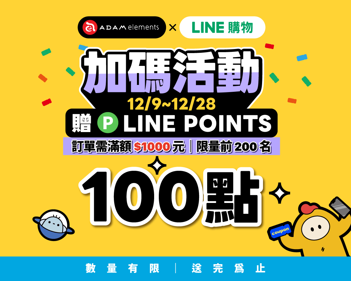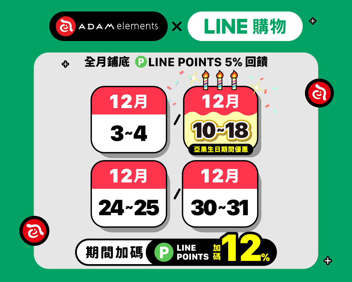 ADAM × LINE購物 全館優惠再回饋 ➜ 指定日期最高加碼12%