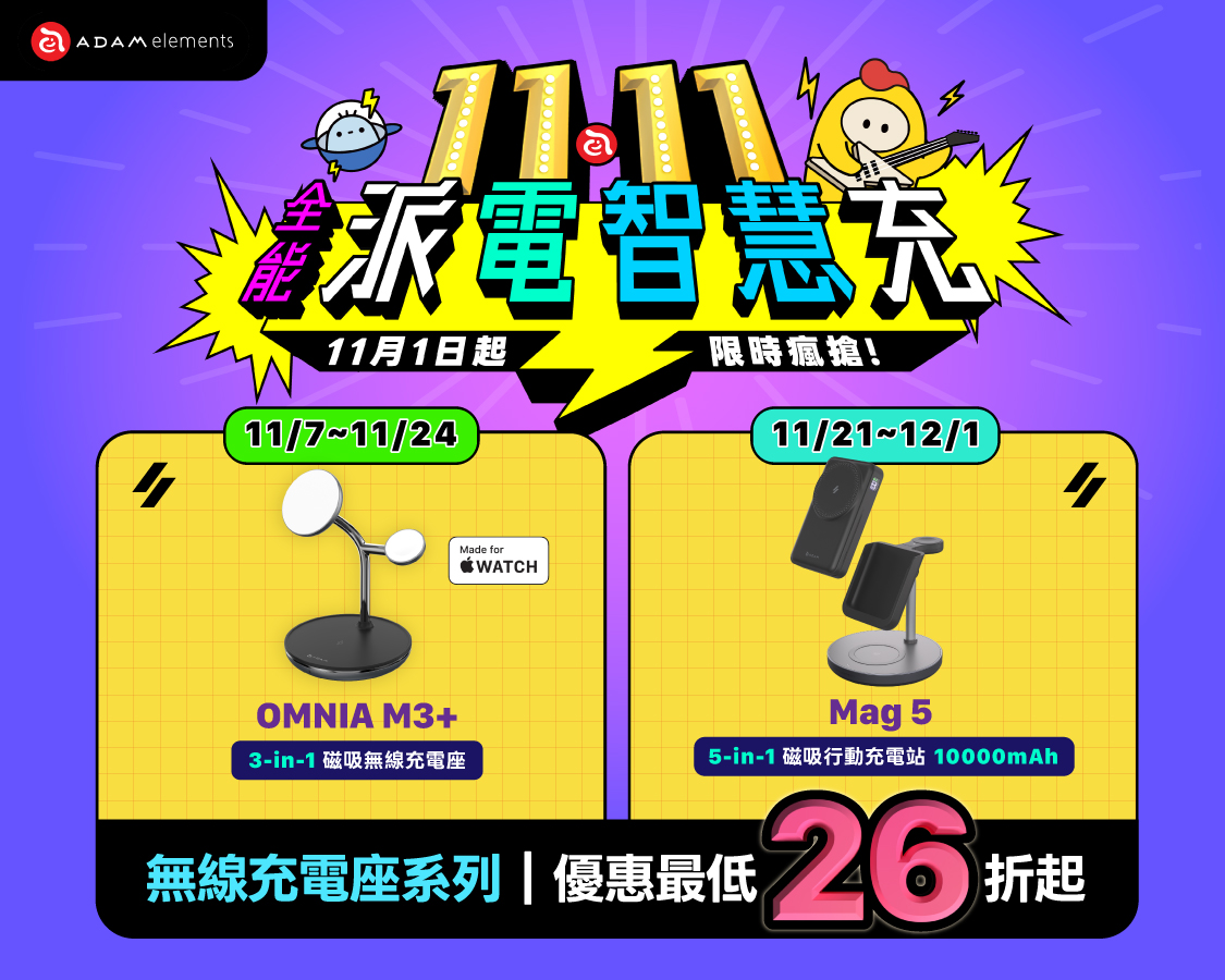 雙11全能派電智慧充 💥無線充電座超殺優惠 26折起