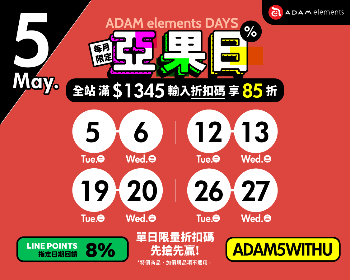 全館滿額再享85折 / 折扣碼在這 ▶『ADAM5WITHU』