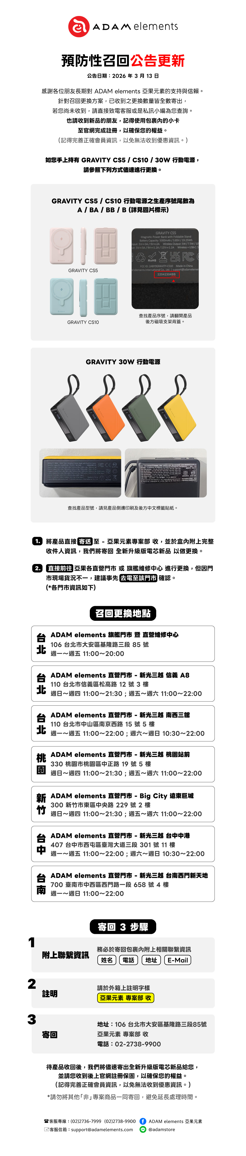 《 ADAM elements 亞果元素》預防性召回公告更新出貨相關說明
