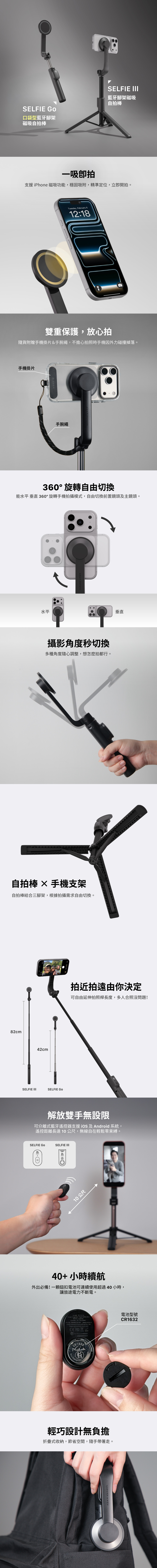 ◼︎ 支援磁吸功能,手機能水平、垂直360度旋轉,手機放置好後能隨意變換使用前置鏡頭或主鏡頭,省去重新放置手機的麻煩。