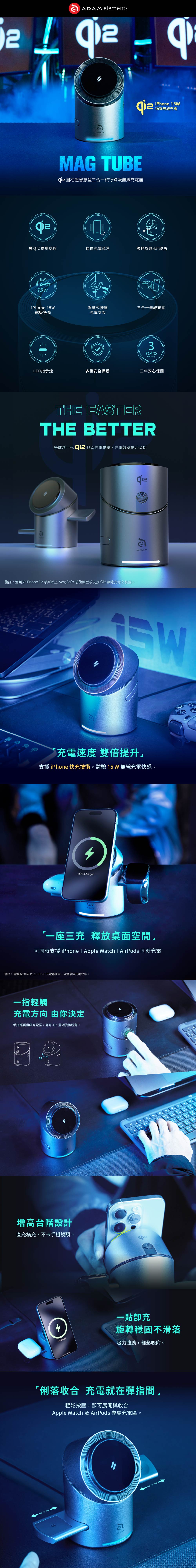 ● 兼具時尚及功能性的三合一設計,同時為你的iPhone.Apple Watch提供快速充電,以及AirPods充飽電。