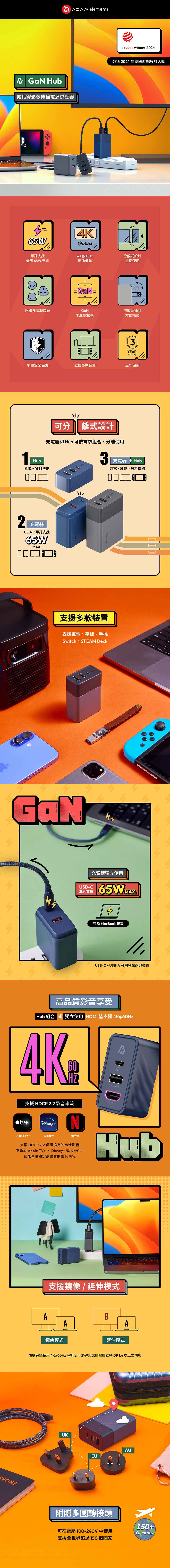 GaN Hub 65W 氮化鎵影像傳輸電源供應器