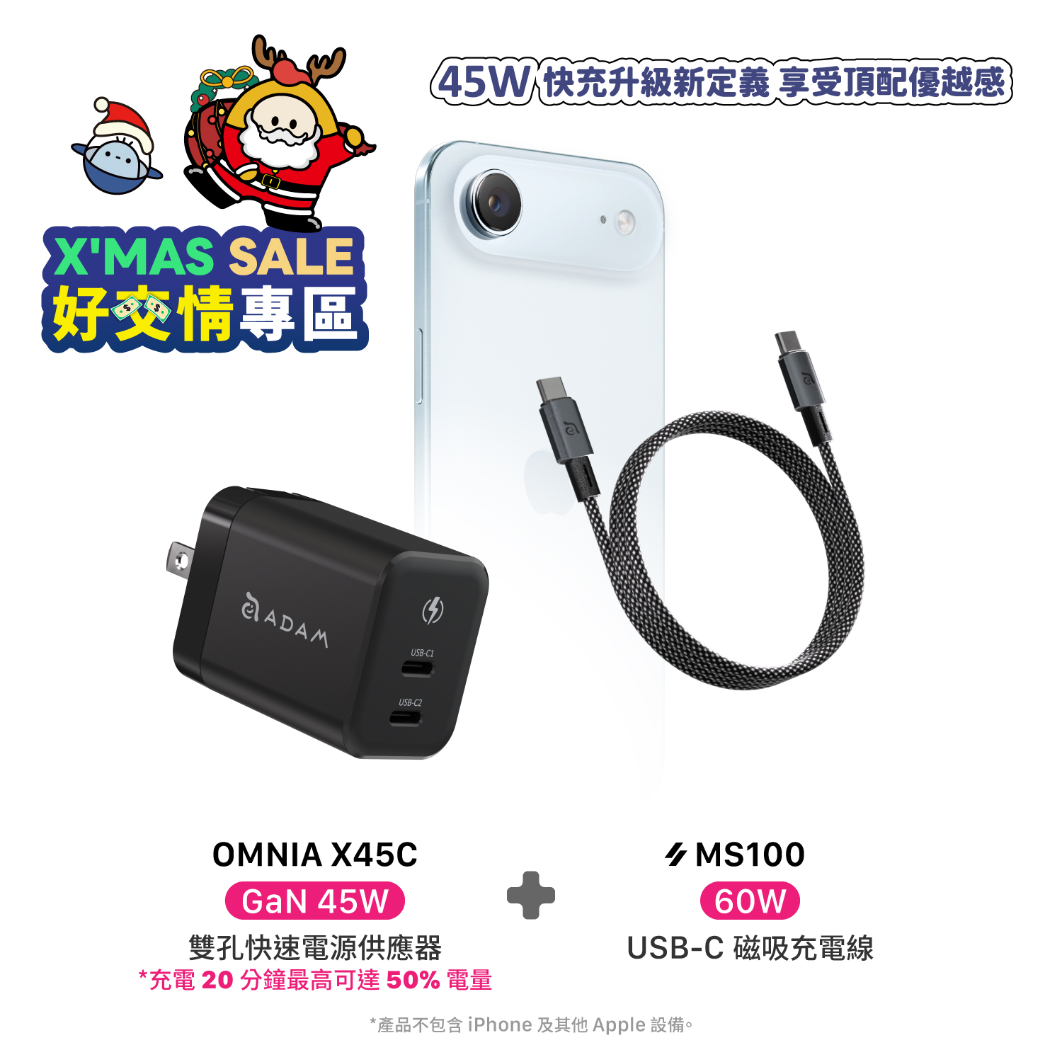 OMNIA X45C GaN氮化鎵45W 雙孔迷你快速電源供應器