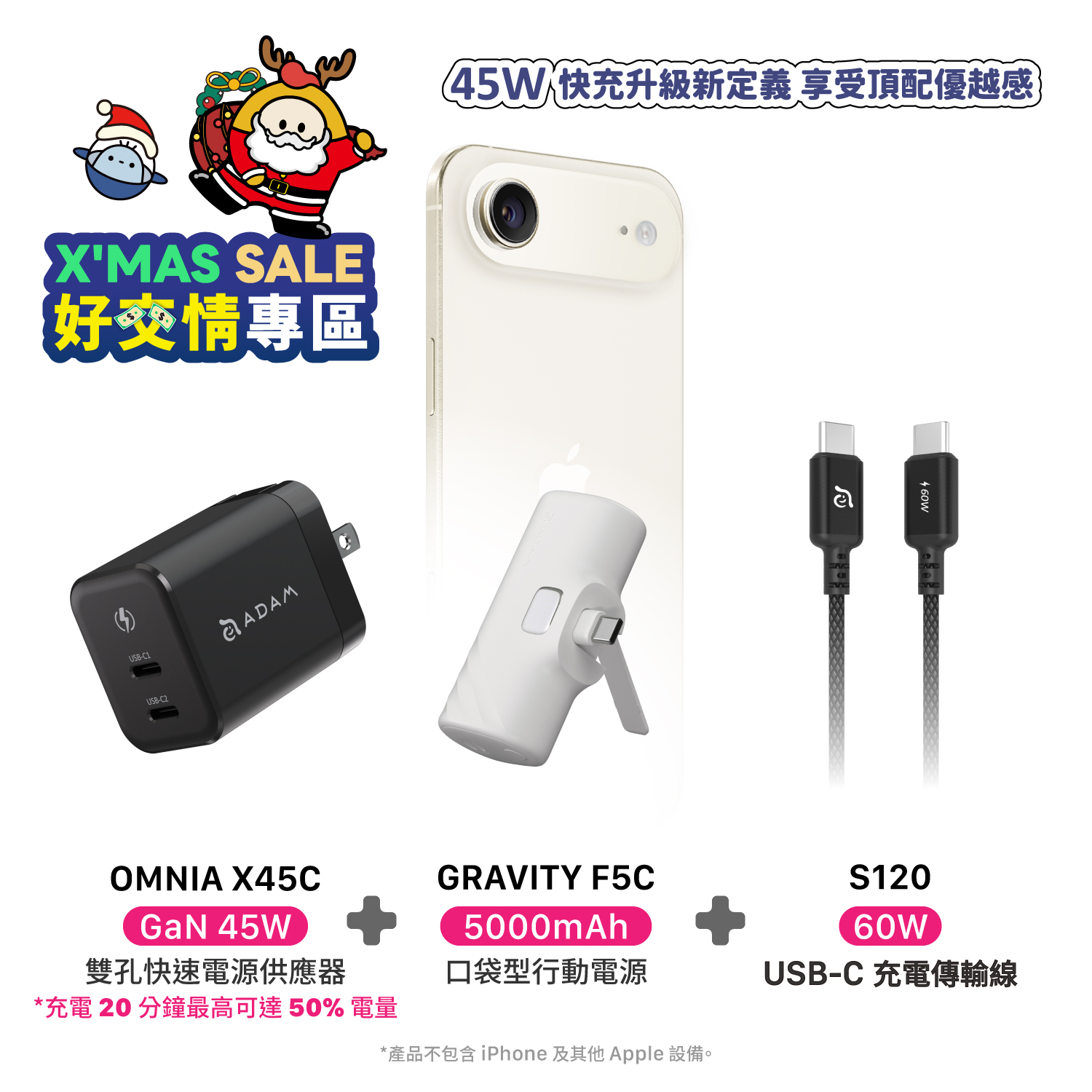 OMNIA X45C GaN氮化鎵45W 雙孔迷你快速電源供應器