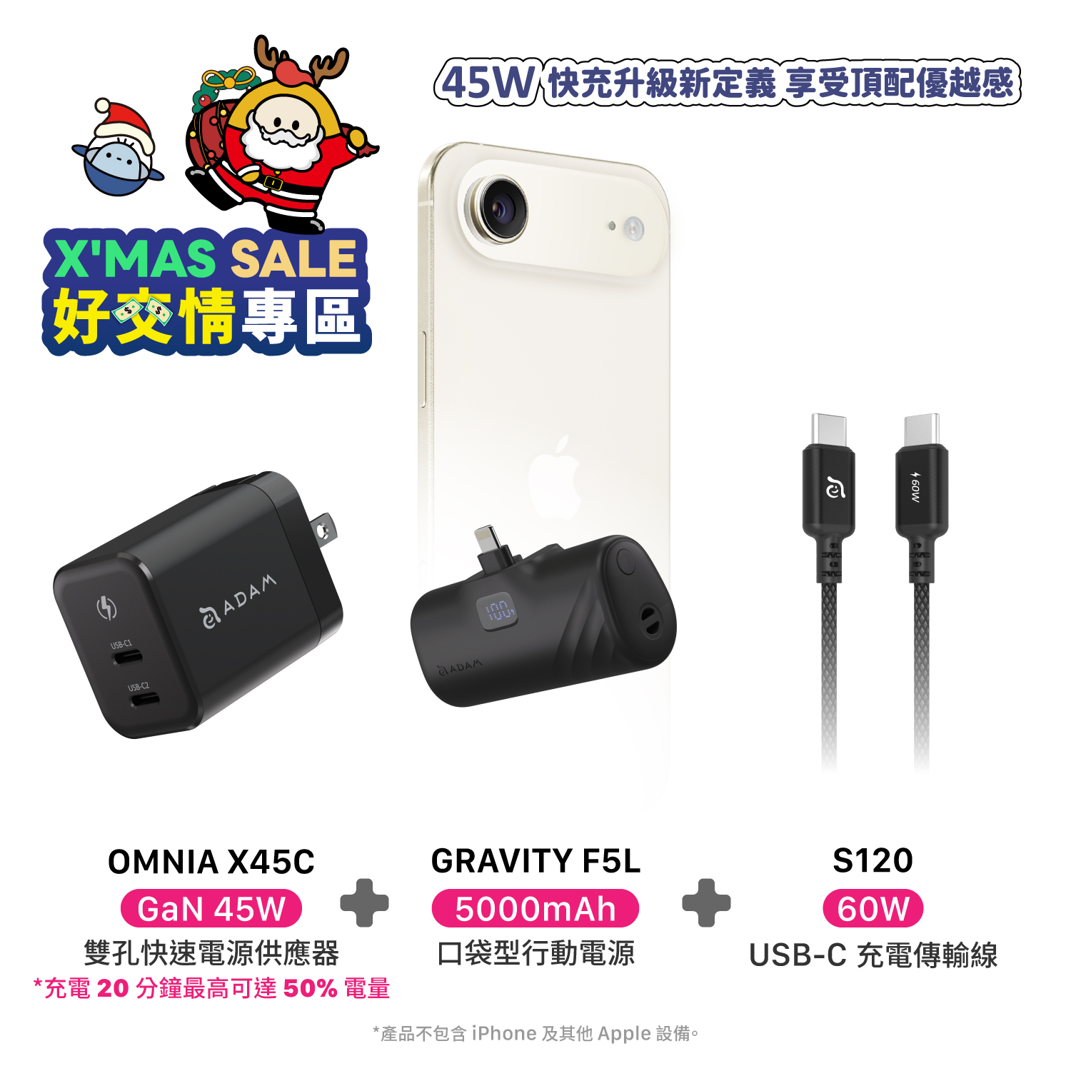 ►支援即將上市iPhone 17、Andriod 裝置、iPad Pro 11"/12.9" (2018 or later)、iPad Air 4 (2020 or later)、iPad 10、iPad mini 6、MacBook Air、MacBook Pro 13"、筆電(60W以下機種)。
