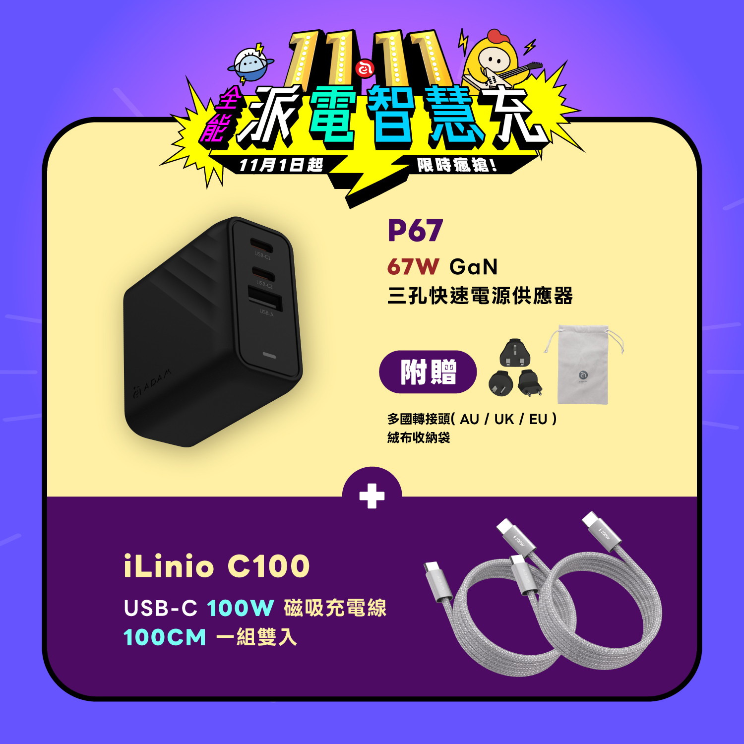 iLinio C100 USB-C 100W 磁吸充電線 (一組二入)