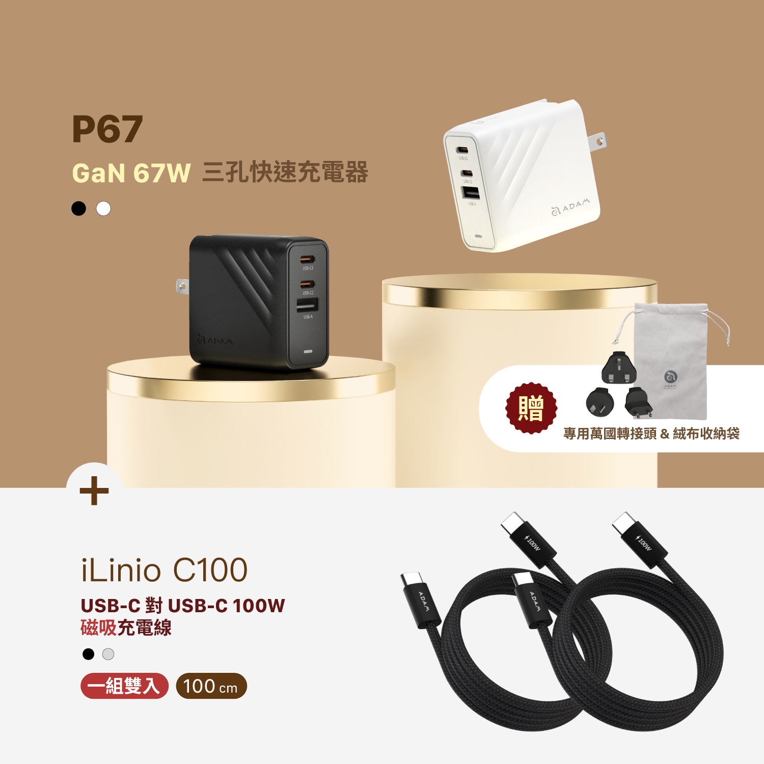 ◼︎ 使用 GaN 晶片,體積更小、效率更高、發熱更低,小小一顆就達到67W充電功率。
