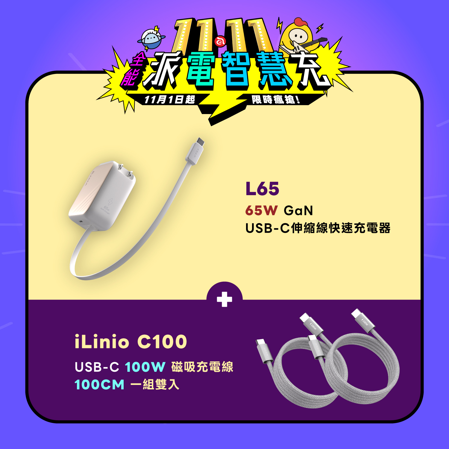 iLinio C100 USB-C 100W 磁吸充電線 (一組二入)