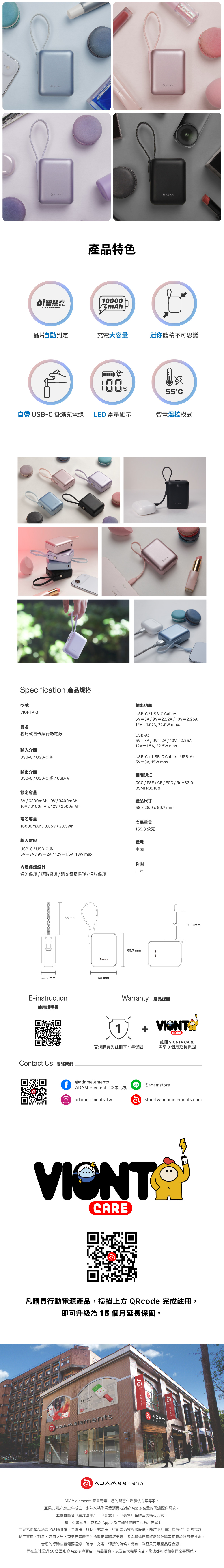 ✿ 電芯容量 10000mAh / 38.5Wh,符合國際航空攜帶標準,出國搭機隨身安心帶。