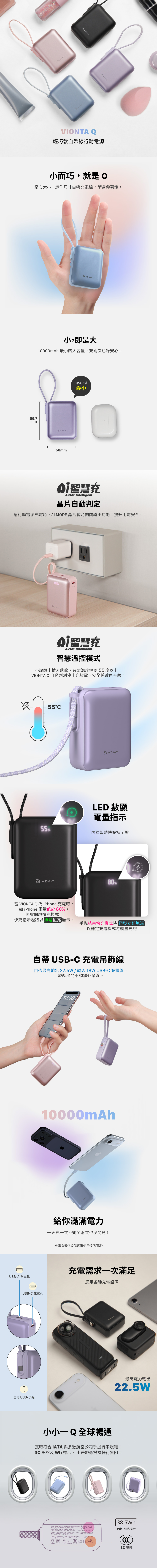 ✿ USB-C/USB-A/自帶USB-C線,最高22.5W快充,iPhone、Android、平板、耳機多種裝置同時充電。