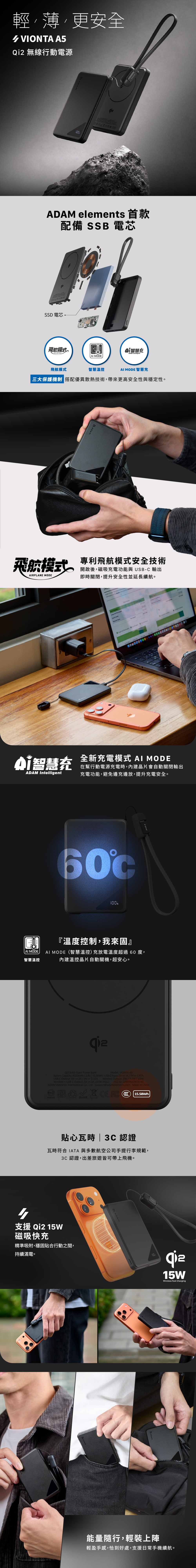 ♣︎ 明確標示瓦時(15.58Wh),並通過Qi2、CCC、CE、FCC、RoHS、BSMI和NCC 等安全認證,國內外都好用。