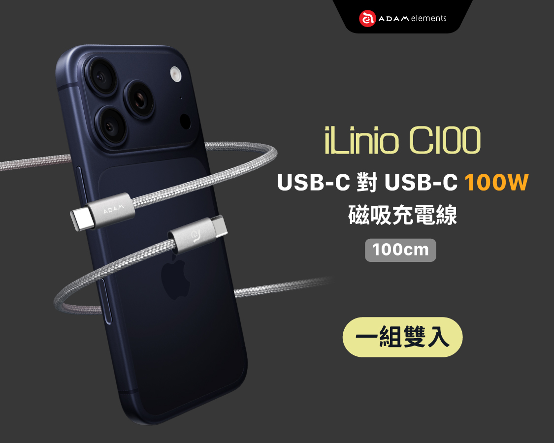 【官網限定】【二入+二入】 iLinio C100 USB-C 100W 磁吸充電線 (一組二入)
