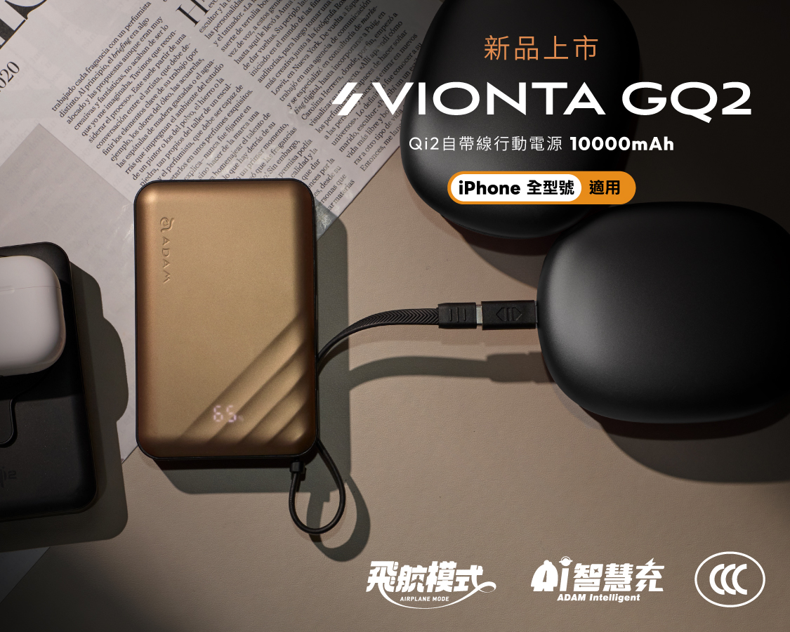 VIONTA GQ2 Qi2 自帶線雙接頭行動電源 (有標示Wh/3C認證/可上飛機)