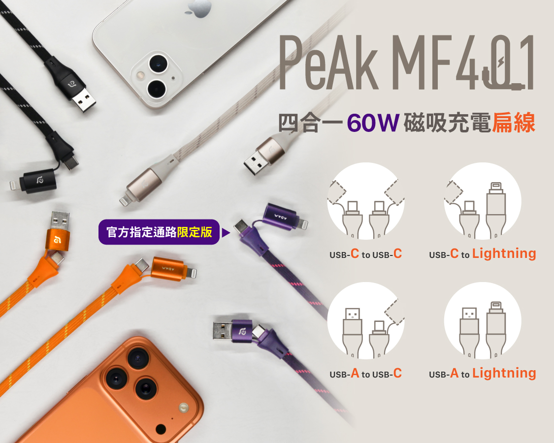 【官網限定包色組】PeAk MF401 四合一 60W磁吸充電線